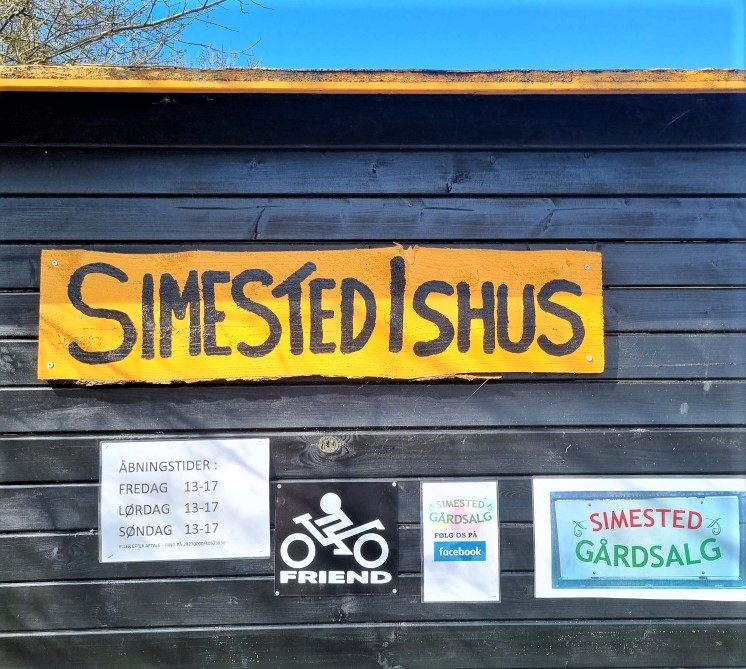 SIMESTED ISHUS hilser motorcykler velkommen med Bikerfriend logoet. Ritva langer den gode Kastberg is over disken og køber du en is er der gratis kaffe til.