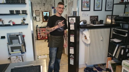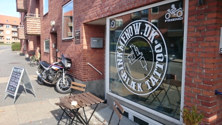 Bkæk Tattoo forhandler BikerFriend mærker i forretningen.